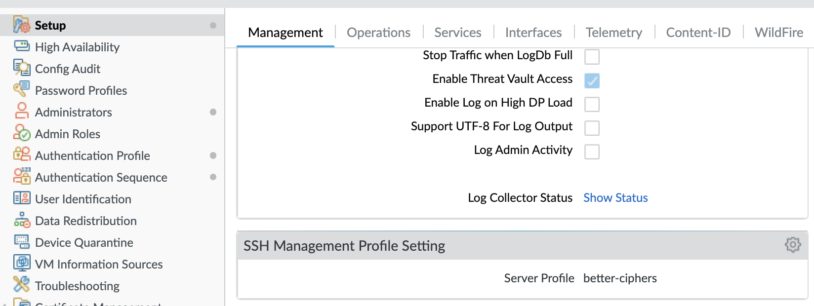 set deviceconfig system ssh mgmt server-profile better-ciphers