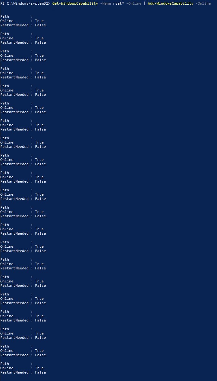 Get-WindowsCapability -Name RSAT* -Online | Add-WindowsCapability -Online